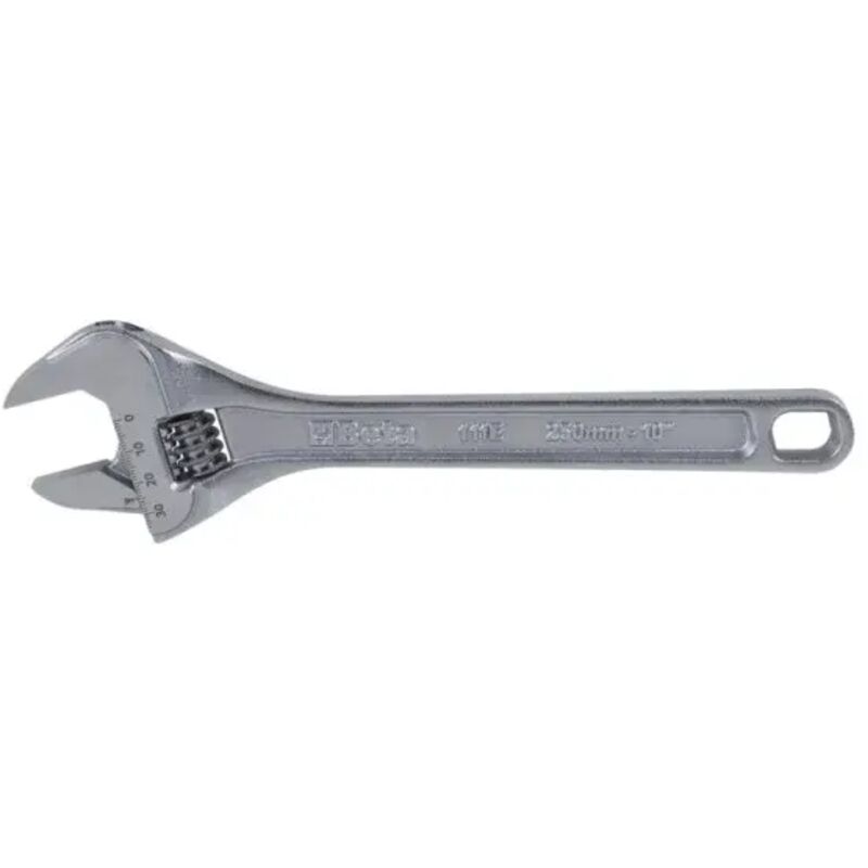 Chiave a rullino cromata - Beta 111E Chiave regolabile a rullino cromata con scala graduata - Beta 111E La chiave a rullino Beta 111E consente di avvitare e svitare dadi e bulloni di diverse dimensioni grazie alla ganascia regolabile tramite rullino. Lo studio della nuova ergonomia ha permesso di avere un riduzione di peso del 20% per una chiave ancora più leggera e maneggevole. Caratteristiche: • Rotazione destrorsa • Testa ribassata e inclinata di 15° per manovrare anche negli spazi più difficili • Apertura della chiave maggiorata • Ingombro ridotto della testa a ganascia completamente aperta • Doppia marcatura al laser in mm/pollici per regolazioni accurate • Teste cromate satinate per una migliore lettura della scala • Finitura cromata satinata del corpo • Elevata resistenza meccanica alle torsioni grazie all'impiego dell'acciaio legato • Trattamenti termici dedicati per un'ottima resistenza all'usura • Impugnatura ampia per un maggiore comfort durante l'utilizzo • Foro su