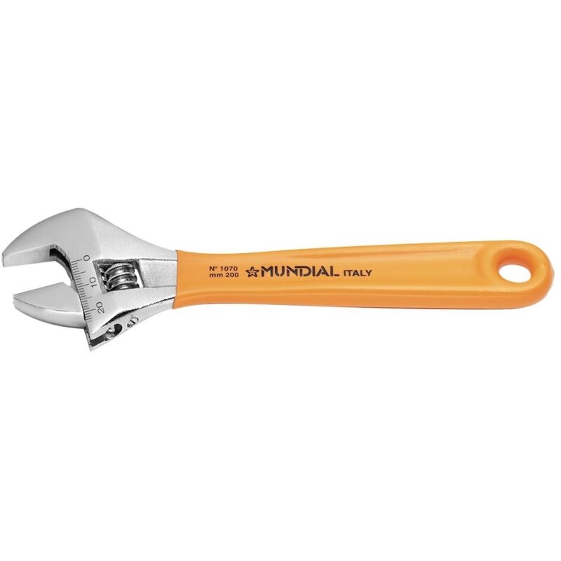 Chiave regolabile MUNDIAL Acciaio chrom-vanadiumFinitura cromata Impugnatura plasticataLunghezza: 250 mm Escursione della chiave: 0-30 mm Prodotto di qualità LA FATTURA VIENE EMESSA PER IMPORTI SUPERIORI A 20 € E VA RICHIESTA AL MOMENTO DELL' ACQUISTO
