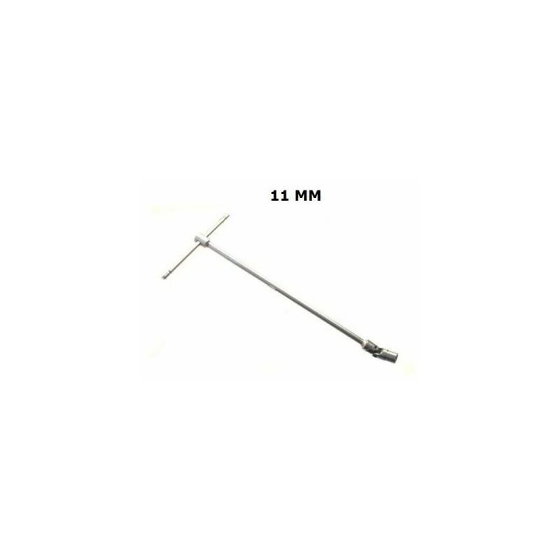 CHIAVE A T DA 11 mm CONN BUSSOLA SNODABILE ED INTERNO A PROFILO ESAGONALE. REALIZZATO INTERAMENTE IN ACCIAIO CHROME VANADIUM. OGNI CHIAVE E' DOTATA DI MANICO A T SCORREVOLE, TERMINALE PER L'AGGANCIO DEL BULLONE SNODABILE CON CONFORMAZIONE INTERNA ESAGONALE PER UN AGGANCIO SEMPRE PERFETTO ANCHE IN CASO DI BULLONE CON TESTA ROVINATA. MISURE: 11mm