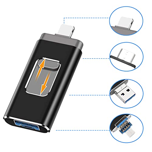 【Unità flash USB 4 in 1】: funzione Type-C/Micro/iOS/USB 4 in 1, trasferisce facilmente file tra smartphone. Prestazioni ad alto costo e alta qualità. per dispositivi iPhone/iOS. / Android / PC.