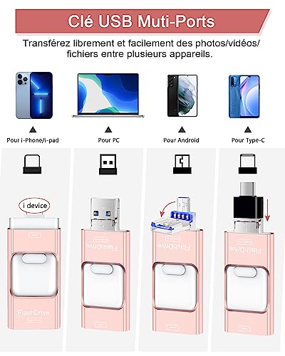 【Chiavetta USB 4 in 1 - Trasferimento facile dei file】Porta iOS + porta Android + tipo C / USB C + USB 3.0 e può essere utilizzata per telefono / iOS / dispositivi Android / PC. La chiavetta USB supporta i principali formati video e musicali, consentendo di riprodurre film e ascoltare musica direttamente dalla chiavetta da 256 GB.