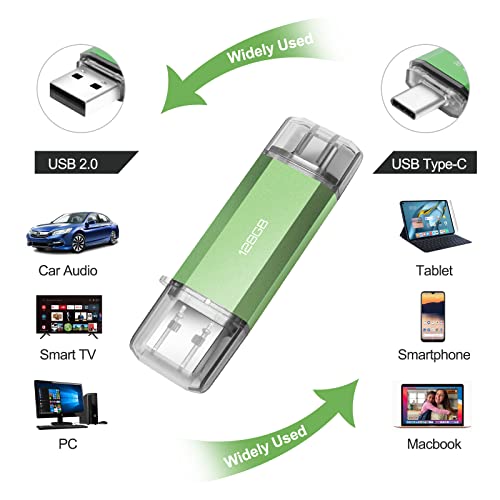 Chiavetta USB C 128 GB, Ansodo Type C Pen Drive 128 Giga Portatile Pennetta USB 128gb 2 in 1 OTG USB C Flash Drive 128 GB per USB-C Smartphone, Laptop, PC, Tablet, Auto, TV. (Verde)