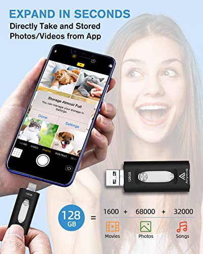 128 GB Chiavetta USB per Phone, Anyoug Pen Drive USB C Flash Drive 4 in 1, Memoria USB 3.0 Memoria Esterna Photo Stick Penne USB per iOS OTG Android Smartphone PC Tablet