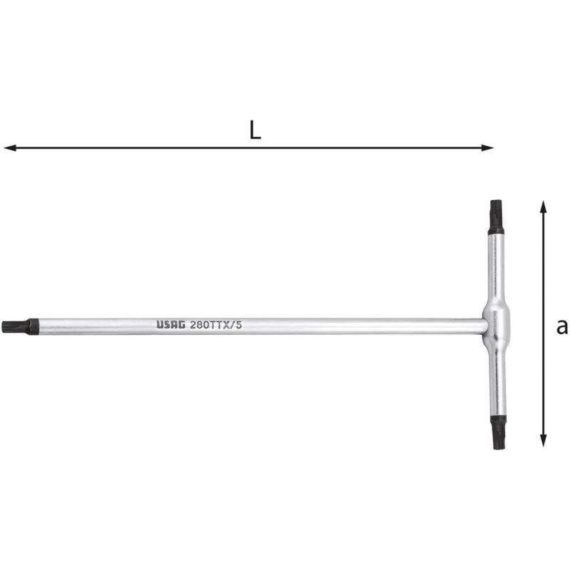 CHIAVI A T PER VITI CON IMPRONTA TORX Acciaio speciale altamente legato al Cromo Vanadio Esecuzione cromata con estremità brunite Codice n° a mm L mm U02800654 T10 75 150 U02800655 T15 75 150