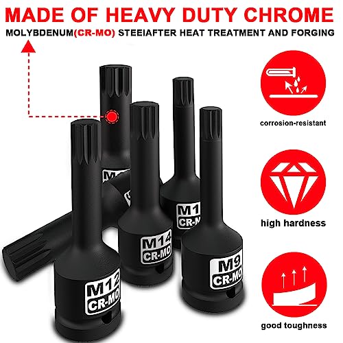 Set di 10 Chiavi XZN a Bussola per Avvitatore a Percussione 1/2", M5 - M18, KIRXST Set di Cacciaviti Triple Square a Percussione da 1/2 Pollice, Set di Chiavi a Bussola Triplo Quadrato 12,7 mm