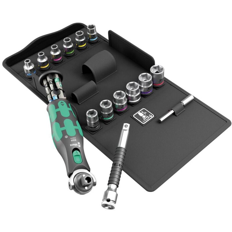 Dettagli tecnici Contenuto 1 KIT Impronta (cacciavite) 1/4 (6.3 mm) Tipo prodotto Kit di chiavi a bussola 8009 Zyklop Pocket Set 3, 27 pezzi Combinazione completa e salvaspazio di chiavi a cricchetto/cacciaviti. Cricchetto Zyklop compatto con caricatore per inserti per tasca dei pantaloni. Assorbimento diretto magnetico per inserti ¼ e dadi da 3/8. Cambio utensile molto rapido grazie alla registrazione non bloccabile. La testa bloccabile a 0°, 15° e 90° consente l'utilizzo dell'utensile come cricchetto e cacciavite a cricchetto. La dentatura fine a 72 denti consente un angolo di ritorno basso di soli 5°. Ampio spettro di utilizzo grazie a 12 inserti integrati nell'impugnatura. Il robusto meccanismo a cricchetto garantisce una coppia sufficiente. Combinazione perfetta di un cricchetto Zyklop con un set di cacciaviti da 12 pezzi. Il supporto universale da 75 mm per inserti da 1/4 può essere utilizzato come prolunga. Include dadi nelle dimensioni più comuni. In scatola di tessuti, adatto