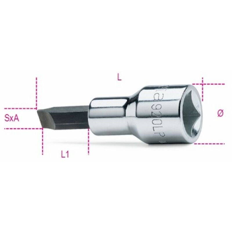 Chiavi a bussola a giravite per viti con intaglio con attacco quadro 1/2 cromate - inserti bruniti Codice prodotto Art. SxAmm Ømm Lmm L1mm 009200456 920LP 1,6X9 1,6x9 22,5 62 24 68