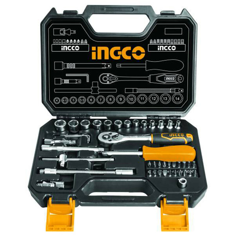 Il Set Chiavi a Bussola Ingco è composto da 45 pezzi, tutti da 1/4. Le 13 bussole in dotazione hanno le seguenti misure: 4-4,5-5-5,5-6-7-8-9-10-11-12-13-14mm. La finitura delle bussole è in Cr-V placca cromata, resistente e di alta qualità. Inoltre, il set include due barre di estensione, un attacco a T 1/4 Cr-V, un'impugnatura morbida e 20 inserti Cr-V di diverse misure: PH: 1-2-3, PZ: 1-2-3, SL: 4-5-6mm, HEX: 1,5-2-3-4-5-6mm T: T10-15-20-25-30. La valigetta contenente il set è compatta e facile da trasportare, perfetta per essere portata in viaggio o in cantiere. La presenza di una barra di estensione flessibile da 150mm Cr-V e di quattro chiavi esagonali con finitura nichel (1,25-1,5-2,0-2,5mm) rendono questo set particolarmente versatile e adatto a svariati usi. Inoltre, il set include un'impugnatura chiave a cricchetto 1/4 45T-a rilascio veloce Cr-V, un giunto universale e un cacciavite porta bit. Tutti gli utensili sono di alta qualità e rispondono ai requisiti di sicurezza