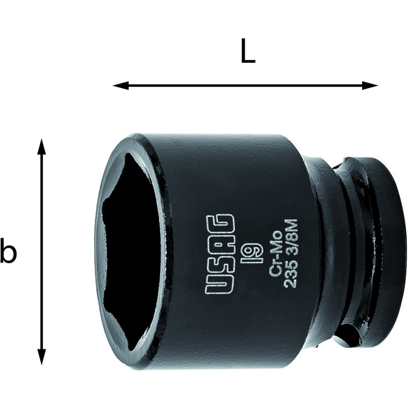 CHIAVI A BUSSOLA MACCHINA CON BOCCA ESAGONALE Acciaio speciale altamente legato al Cromo Molibdeno Esecuzione fosfatata Utilizzare la spina di tenuta 235 MCA/1 (U02350201Q) per le misure da 6÷12 e la 235 MCA/2 (U02350202Q) per le misure da 13÷19 Utilizzare l'anello di sicurezza 235 MDA/1 (U02350221Q) per le misure da 6÷12 e la 235 MDA/2 (U02350222Q) per le misure da 13÷19 Codice Bocca esagonale mm b mm L mm U02356112 17 25 30