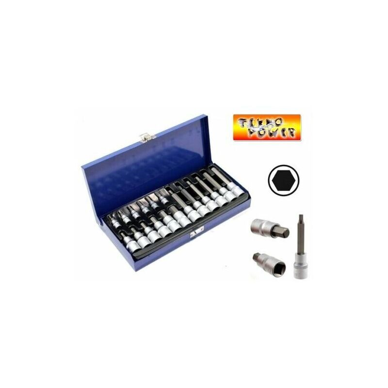 SET DI CHIAVI A BUSSOLA ESAGONALI MASCHIO. SET DI CHIAVI A BUSSOLA ESAGONALI MASCHIO .IL SET SI COMPONE DI 18 CHIAVI A BUSSOLA ESAGONALI MASCHIO DI CUI: 6 CON ATTACCO DA 1/4 CORTE DI MISURA: HW 3--4--5--6--7--8--X 35 mm. 6 CON ATTACCO DA 1/2 DI MISURA: HW 6--7--8--10--12--14--X 55 mm. 6 CON ATTACCO DA 1/2 DI MISURA: HW 5--6--7--8--10--12-- X 100 mm REALIZZATE IN ACCIAIO CROME VANADIUM. IL TUTTO IN VALIGETTA DI METALLO.
