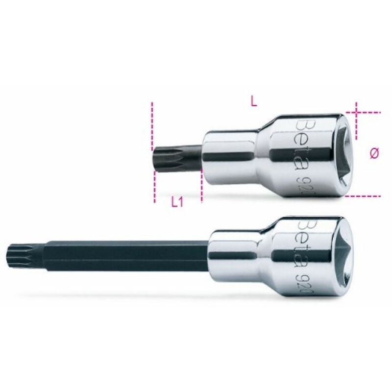 Chiavi a bussola maschio per viti con impronta XZN®, con attacco quadro femmina 1/2 cromate - inserti bruniti Codice prodotto Art. Ø mm L mm L1 mm g 009200571 920XZN 14 M14 23,0 58 20 114,7