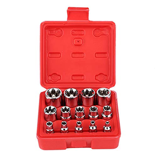 Set di chiavi a bussola Torx Bit, 14 pezzi Set di bussole a stella Torx tipo E E4-E24 1/4 "3/8" 1/2 "Kit di strumenti per la riparazione dell'azionamento