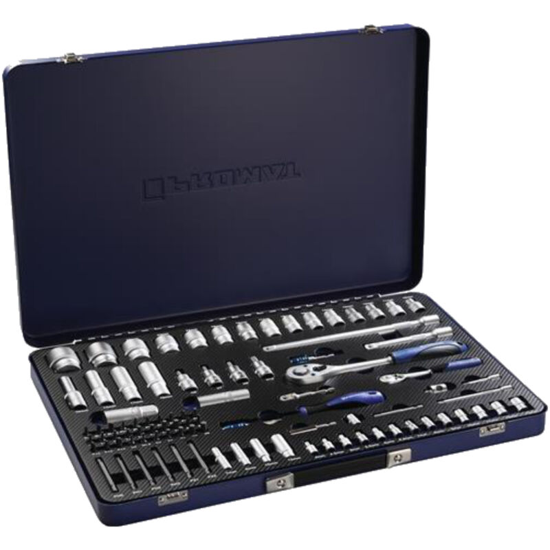 Azionamento quadrato da 6,3 mm (1/4) e 12,5 mm (1/2) · Inserti e comandi chiave plug-in in acciaio cromo-vanadio · cromato opaco · Inserti chiave plug-in con zigrinatura grippy · Inserti a vite in acciaio S2 · Scricchiolii di commutazione a leva con maniglia a 2 componenti e funzione di bloccaggio dei dadi con rilascio del pulsante · two-tone insert for simple tool completeness control Content: with 6.3 mm (1/4)- Square drive 1 lever switching bolt (20 teeth) each 1 6 edge -Plug-in key insert SW 4 / 4.5 / 5 / 5.5 / 6 / 6.5 / 7 / 8 / 9 / 10 / 11 / 12 / 13 mm each 1 6-edge -Deep bed key insert SW 7 / 8 / 10 / 13 mm each 1 screwdriver bit for slotted screws 4 / 5.5 / 6.5 mm* Screwdriver bits for screws with cross slot (PH): 1 st each. Size 00 / 0 / 3, each 2 st. Size 1 / 2* per 1 screwdriver bit long version (75 mm) for screws with phillips slot (PH) Size 0 / 1 / 2 / 3 Screw bits for screws with Phillips slot (PZD): 1 St. Gr. 3, 2 St. Gr. 1 / 2* each 1 screwdriver bit l ange Version (75