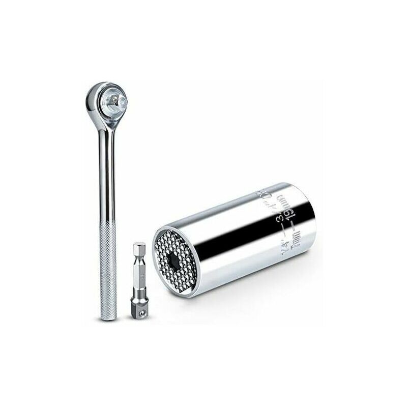Design unico - Questa presa universale adotta un esclusivo principio di progettazione a nido d'ape. L'esagono incassato e il design del perno tondo in acciaio possono regolare automaticamente qualsiasi dimensione o forma, il che lo rende più flessibile e può essere innestato senza soluzione di continuità e saldamente con la vite, non facile da scivolare. allo standard da 1/4 a 3/4 di pollice (7 a 19 mm) viti, dadi e bulloni, in grado di soddisfare tutte le vostre esigenze.È piccolo, leggero e facile da trasportare. [Materiali di alta qualità] L'adattatore per presa universale è forgiato in acciaio al cromo vanadio e l'interno è realizzato con 54 tubi in acciaio CR-V di alta qualità con le caratteristiche di elevata durezza, coppia elevata, elevata tenacità e super durata . Questi tubi in acciaio sono rispettivamente azionati da molle, quindi il manicotto può adattarsi automaticamente a qualsiasi forma e può essere spostato su diversi tipi di raccordi senza sostituire il manicotto.