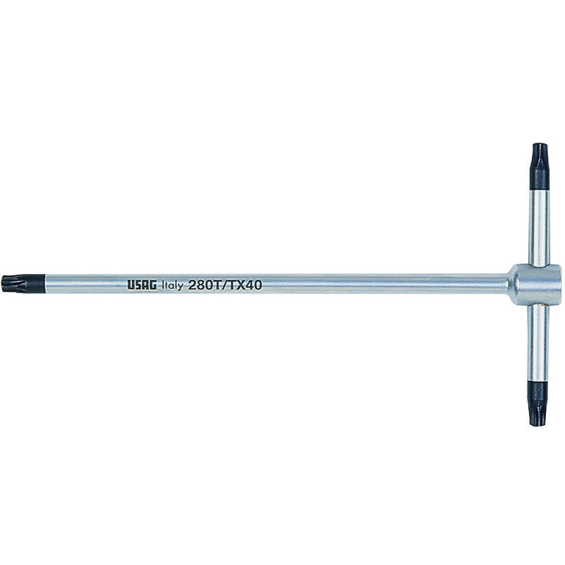 CHIAVI CHIAVE A T CON IMPRONTA TORX TX USAG 280 TTX PROFESSIONALI Caratteristiche Acciaio speciale altamente legato al Silicio Cromo Vanadio Esecuzione cromata con estremità brunite Dettagli famiglia Codice n° a mm L mm 280650 T6 62 125 280651 T7 62 125 280652 T8 62 125 280653 T9 62 125 280654 T10 75 150 280655 T15 75 150 280656 T20 75 150 280657 T25 90 180 280658 T27 90 180 280659 T30 90 180 280660 T40 105 210 280661 T45 105 210 QUALITA' PROFESSIONALE USAG