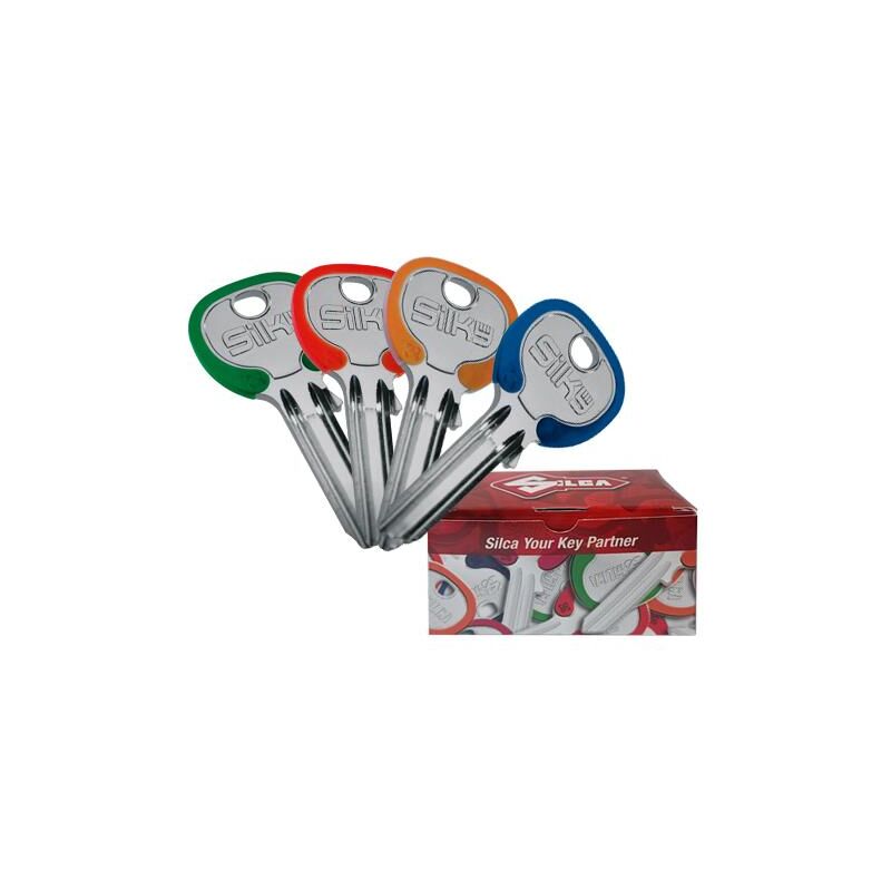 Chiavi Silca ottone Silky colori assortiti In ottone nichelato, con testa contornata da un anello colorato indelebile. Contenute in scatole con colori assortiti ( Per Mod. DZ colori: Arancione - Rosso - Verde - Blu - Fucsia ) ( Per Mod. DZ1 colori: Nero - Giallo - Verde - Azzurro - Viola ) UL052DZ1 Mod Universal