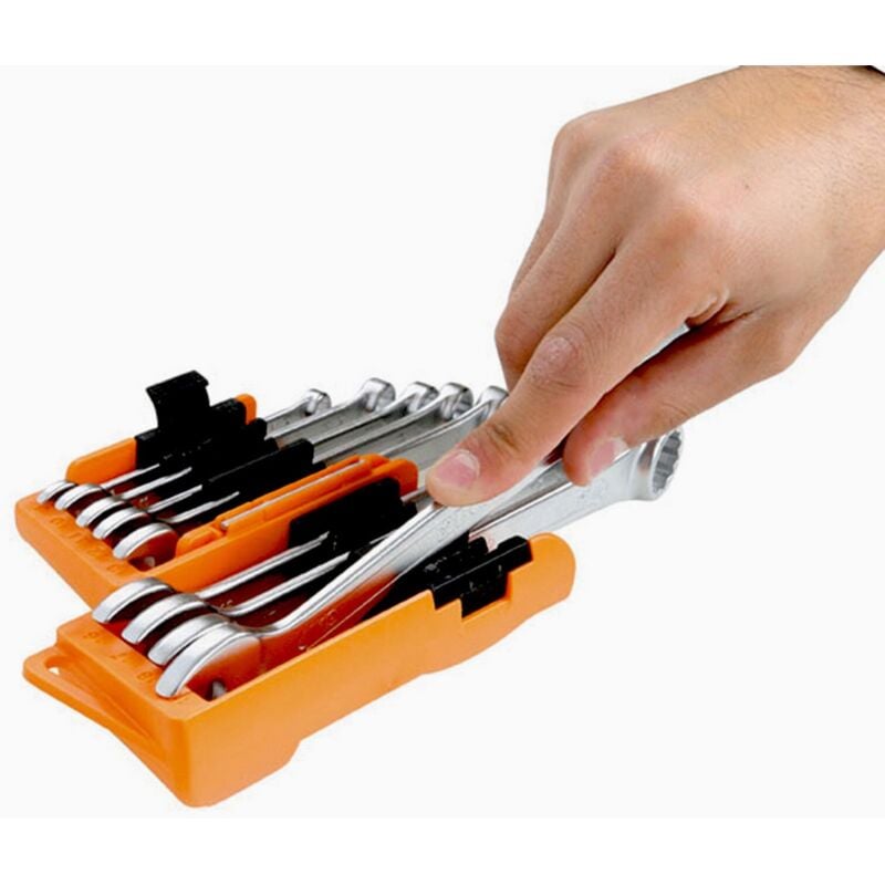 Serie Beta art. 42/SC9l chiavi combinate con esecuzione cromata, testa lucida Tipo corto UNI 7738 - DIN 3113 Serie da 9 pezzi Misura da 8 a 19 mm Con supporto compatto e bloccaggio sicuro delle chiavi Per maggiori info sui prodotti visita il nostro sito;