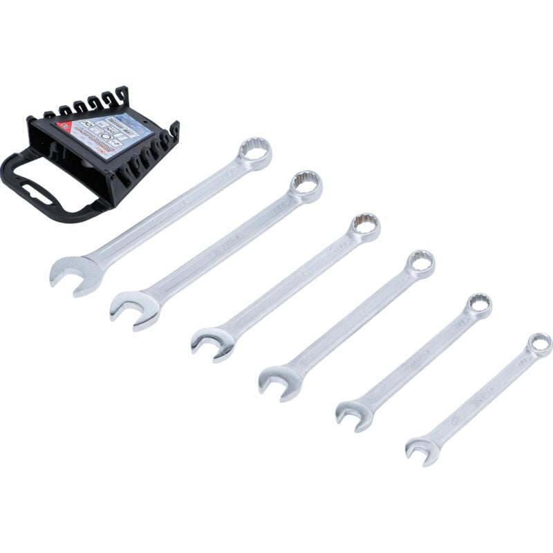 Fucinatura a caldo Cromato, teste lucidate a specchio Estremità dell'anello inclinata a 15° Profilo lato anello: poligonale In pratico supporto pieghevole Oggetto della fornitura: Chiave combinata anello-forchetta, lunghezza 3/8 Chiave combinata anello-forchetta, lunghezza 7/16 Chiave combinata anello-forchetta, lunghezza 1/2 Chiave combinata anello-forchetta, lunghezza 9/16 Chiave combinata anello-forchetta, lunghezza 5/8 Chiave combinata anello-forchetta, lunghezza 11/16 Peso del tessuto 0.556 Dimensioni dell'imballaggio 1 Peso lordo 556 g Angolo di offset 15 ° Materiale (F) Chrom-Vanadium-Stahl