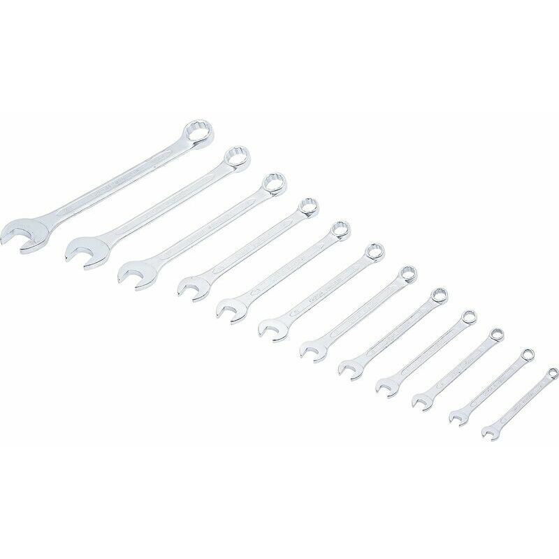 Realizzato in acciaio al cromo vanadio Forgiato a caldo Testa cromata e lucidata a specchio L'estremità del cricchetto è inclinata di 15° Marchio del toro: dodici lati Nella borsa con ruote in tetron Chiave combinata 6-8-9-10-11-12-13 -14-17-19- 22-24 mm [Borsa di tela resistente all'abrasione, facile da riporre] Con fori per appenderla, può essere appesa al muro;