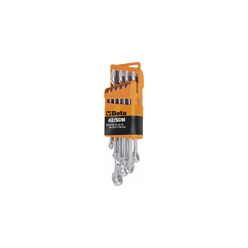 In acciaio cromato. Serie Mm. 8, 10, 11, 12, 13, 14, 15, 17 e 19. Con supporto compatto in plastica resistente ed appendibile.