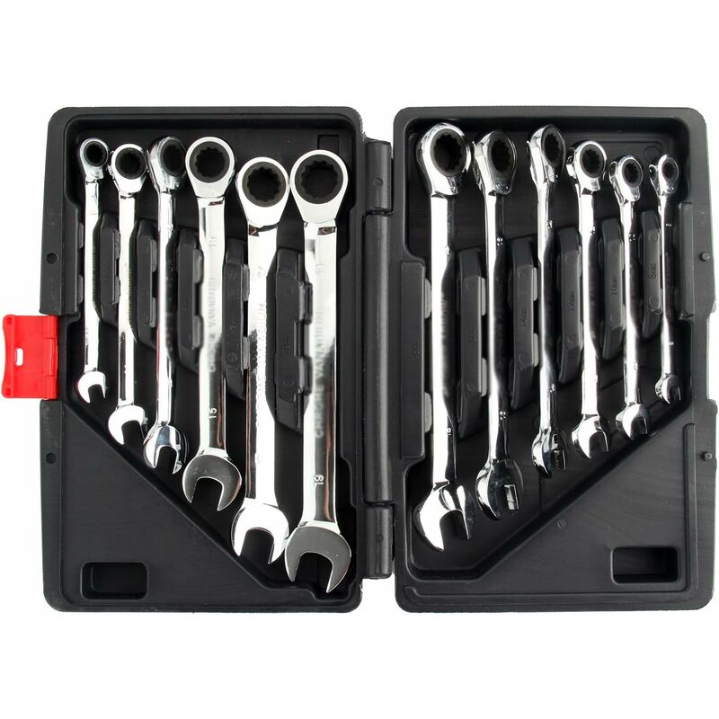 12 pezzi numerati 8 9 10 11 12 13 14 15 16 17 18 19 tutti con finitura cromata vanadio polacca, perfetta per accedere a zone difficili da raggiungere. 2 tipi - testa fissa e testa flessibile per scegliere. Dimensione della chiave: da 8 a 19 mm. Dimensioni della scatola: circa 29 x 21 x 7 cm. Materiale: utensili in acciaio al cromo vanadio, custodia in plastica. Dimensioni del prodotto (L x P x A) 29 x 21 x 7 cm;