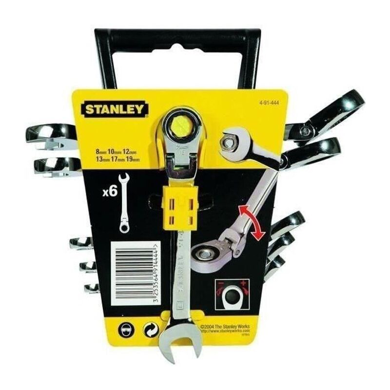 6 chiavi a cricchetto testa indicizzabile - Marca Stanley - chiave falsa - in acciaio al cromo vanadio ad alte prestazioni e di trattamento termico - riporto di cromo nichel opaco finitura anticorrosione - angolo di recupero di 5 ° - Per il serraggio e l'allentamento veloce - contiene 6 pezzi: 10/12/13/16/17 / 19 millimetri