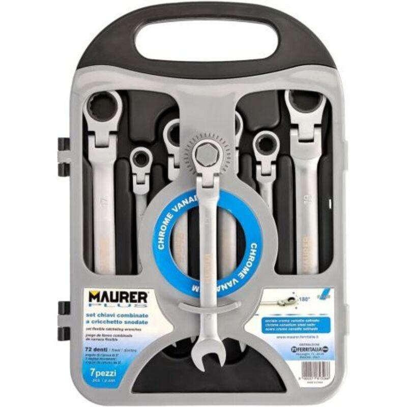 MAURER SERIE CHIAVI COMBINATE Set di chiavi combinate con cricchetto 7 pezzi DIN3113, rotazione 180° set di chiavi a cricchetto, professionale, multicolore, unico.
