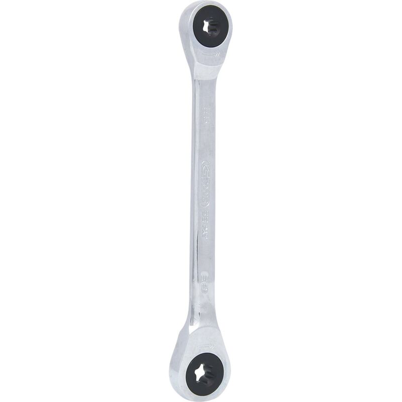 Ideale per il montaggio e lo smontaggio in posizioni con poco spazio e per la sostituzione della trasmissione Torx profilo E Forma diritta Dentatura precisa con 72 denti Cromate lucide Cromo-vanadio Dente 72 Larghezza tra i piani in E-TORX E6 x E8 Altezza della testa (A2) 6.9 Altezza della testa (A1) 6.5 Peso del tessuto 70 Dimensione esterna B2 20.2 Dimensione esterna B1 16.8 Dimensioni dell'imballaggio 1 Materiale1 Feinster Chrom Vanadium Stahl, hochglanz verchromt Forma della chiave gerade Lunghezza totale L in mm 128.0 Campo di applicazione in NM 13/18 Profilo 1 E-TORX