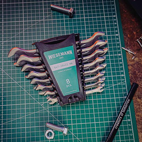Set di 8 chiavi con doppia forchetta 6-22 mm I WIESEMANN 81277 I kit di chiavi a forchetta inserite nel supporto