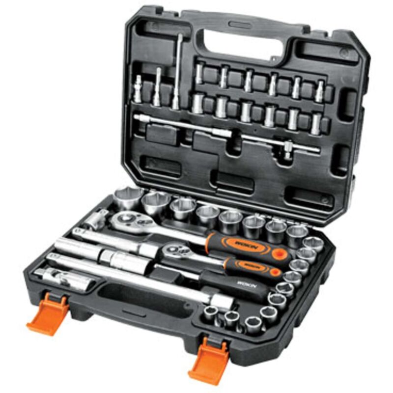 SET CHIAVI ESAGONALI 1/2"-1/4". IN VALIGETTA. Pezzi: 45 Set al cromo vanadio composto da: 1 chiave a cricchetto da 1/2", 1 chiave a cricchetto da 1/4" 1 porta inserti manuale da 1/4" lunghezza Mm. 150 18 bussole esagonali da 1/2" 12 bussole esagonali da 1/4" 1 prolunga da 1/2" lunghezza Mm. 250 1 prolunga da 1/2" lunghezza Mm. 125 1 prolunga da 1/4" lunghezza Mm. 50 1 prolunga da 1/4" lunghezza Mm. 100 1 adattatore a 3 vie da 1/2" lunghezza Mm. 125 1 bussola per candela da Mm. 16 1 bussola per candela da Mm. 21 1 giunto universale da 1/2" 1 giunto universale da 1/4" 1 barra flessibile da 1/4" lunghezza Mm. 150 1 barra scorrevole da 1/4".