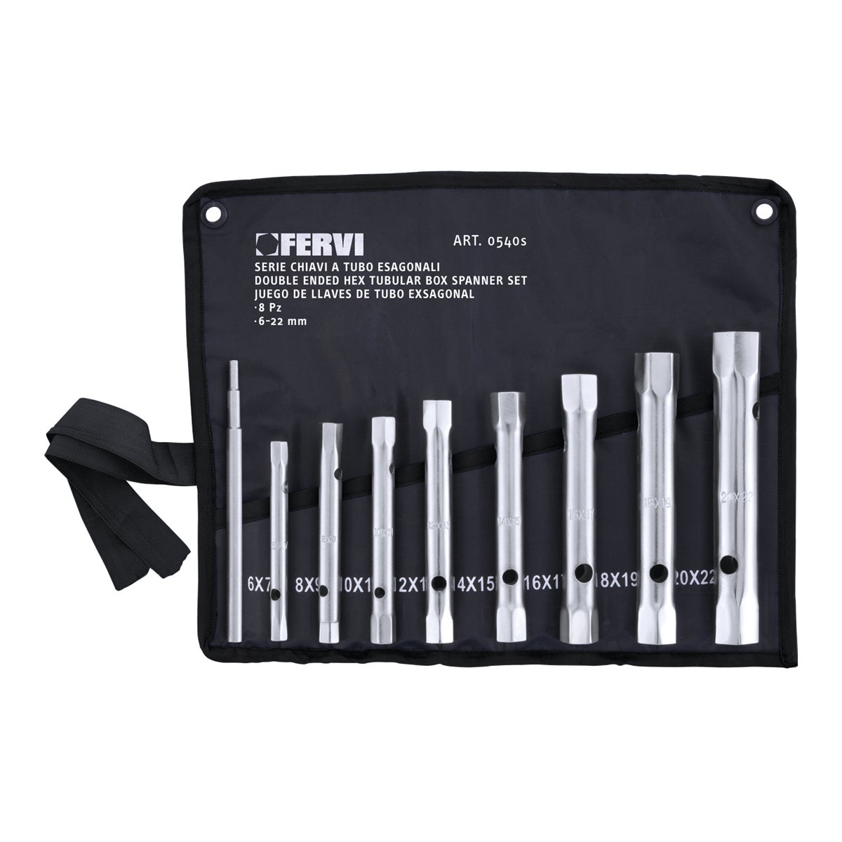 Chiavi realizzate in lega d'acciaio al cromo vanadio. sono resistenti e possono essere utilizzate sia da hobbisti che da professionisti per operazioni di fissaggio di bulloni ed anche per la rimozione di queste. le chiavi vengono custodite in una pratica borsa arrotolabile.. tipo leggero, con spina di manovra a 3 diametri