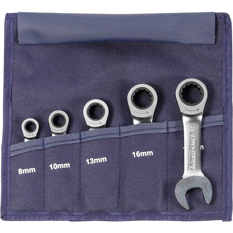 DescrizioneEsecuzione:Forgiate. Lato anello con cricchetto facilmente reversibile.Anello di registro estremamente stretto: 5°.Materiale:Acciaio al cromo-vanadio, esecuzione cromata opaca.Fornitura:cad. 1 chiave n. art. 614816 nelle Dim. 8;