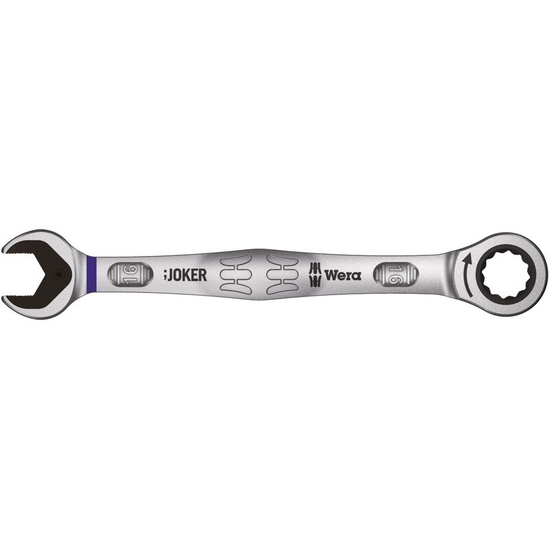 Forgiate. Lato anello con cricchetto a dentatura fine (80 denti) facilmente reversibile con angolo di registro particolarmente stretto (4,5°). Il lato della bocca con profilo esagonale doppio e inserto metallico temprato intercambiabile ha funzione di fermo, funge da finecorsa, impedisce lo scivolamento e permette il serraggio con un angolo di serraggio ridotto. Materiale: Acciaio al cromo-molibdeno, cromato opaco. Dati tecnici Materiale Acciaio al cromo-molibdeno Cricchetto reversibile no Numero di denti 80 Angolo di registro Grad 4.5 Processo di produzione forgiato Superficie es. opaca cromata Posizione anello Grad 0 Tipo di prodotto Chiave Apertura, mm 16 Lunghezza chiave L, mm 212 Denominazione originale prodotto 6000 Joker Dimensione apertura Metrica Apertura bocca b, mm 35 Altezza bocca h1, mm 8,2 Altezza anello h2, mm 10,5 ⌀ Anello D, mm 32,7