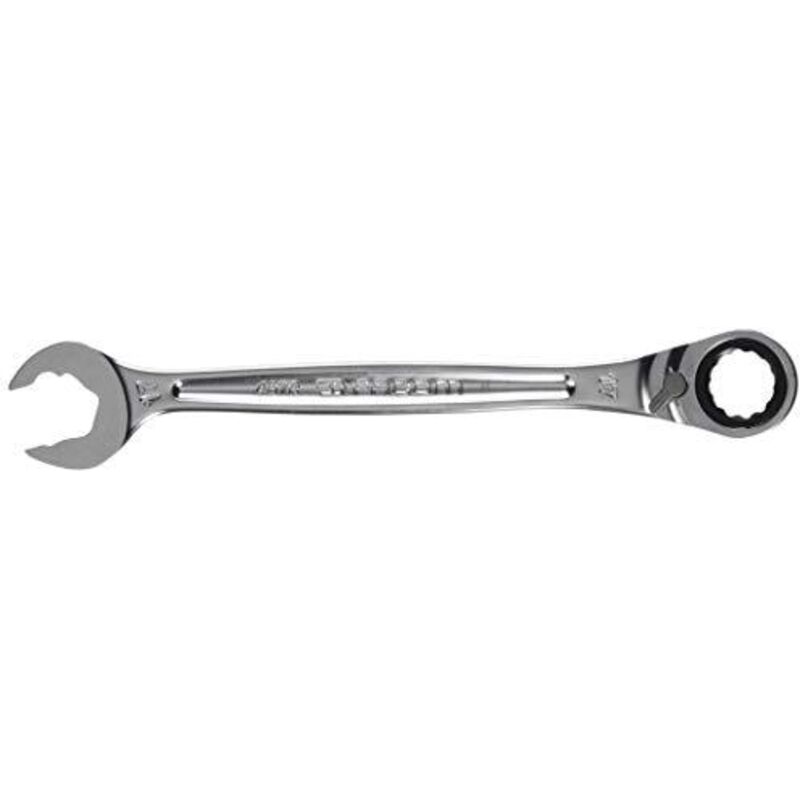 Forgiate. Anello e forcella con effetto cricchetto. Il meccanismo a cricchetto supplementare situato sulla bocca consente un serraggio rapido senza necessità di riapplicare la chiave. Lato anello con molla integrata per impedire lo scivolamento sull'attrezzo di fissaggio - reversibile per serraggio orario e antiorario. Anello di registro estremamente stretto: 5°. Materiale: Acciaio al cromo-vanadio, esecuzione cromata. Dati tecnici Materiale Acciaio al cromo-vanadio Con testina orientabile no Cricchetto reversibile sì Superficie cromata Angolo di registro Grad 5 Processo di produzione forgiato Tipo di prodotto Chiave Apertura, mm 17 Lunghezza chiave L, mm 225 Dimensione apertura metrica Apertura bocca b, mm 36,8 Altezza bocca h1, mm 6,6 Altezza anello h2, mm 10,3 ⌀ Anello D, mm 31,7
