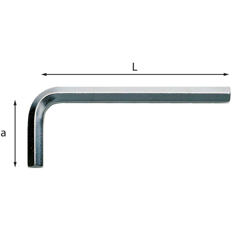 CHIAVI MASCHIO ESAGONALE PIEGATE Per viti con esagono incassato Acciaio speciale altamente legato al Cromo Vanadio Esecuzione zincocromatata Codice Esagono di manovra mm a mm L mm U02800000 1,5 14 45