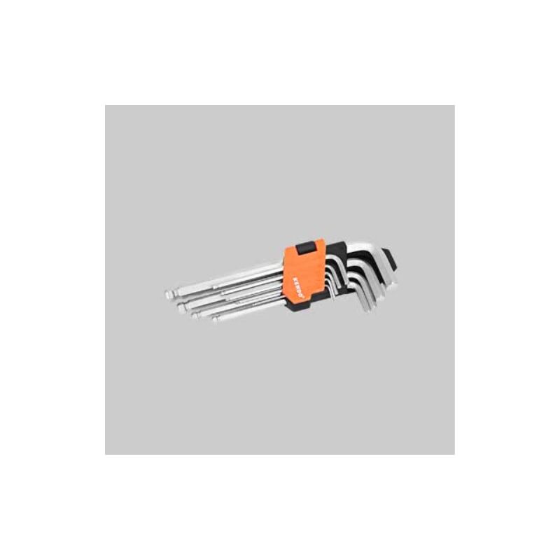 Serie lunga con estremit... sferica. In acciaio al cromo vanadio. Fornito in un case pieghevole. Set chiavi maschio esagonali lunghe kendo c/sfera 9 pezzi 1,5;