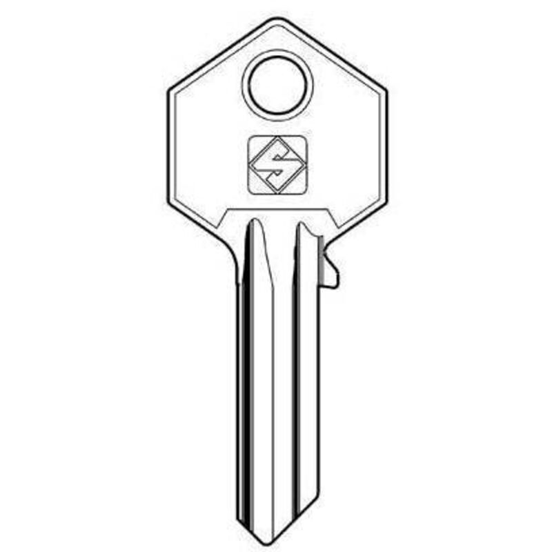 Chiavi Silca per serrature a cilindri ottone In ottone nichelato, con testa sagomata come i modelli originali, nella sigla del modello la lettera R e l'ultimo numero dispari dell'articolo indicano il profilo sinistro, la sequenza di esposizione per ordine alfabetico di modello YA226 Mod Yale spine 5 normali