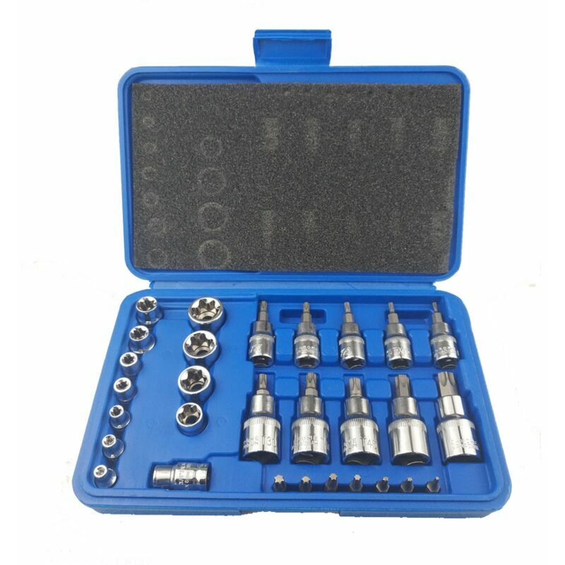 Nome prodotto: Set testine batch Serie testine batch: CR-VT8, CR-VT10, CR-VT15, CR-VT20, CR-VT25, CR-VT27, CR-VT30 Maniche di dosaggio: T10, T15, T20, T25, T27, T30, T40, T45, T50, T55 Serie bussole: E4, E5, E6, E7, E8, E10, E12, E14, E16, E18, E20, da 1/4 di testa quadra a 1/4 di esagono Quantità consegnata: 1 set da 30 pezzi Colore blu Materiale: acciaio al cromo-vanadio Questo kit da 30 pezzi, l'aggiunta perfetta alla tua cassetta degli attrezzi automobilistica, contiene anche una scatola con un interno soffiato per riporre gli accessori in modo sicuro Realizzato in resistente cromo vanadio di alta qualità trattato termicamente e indurito.