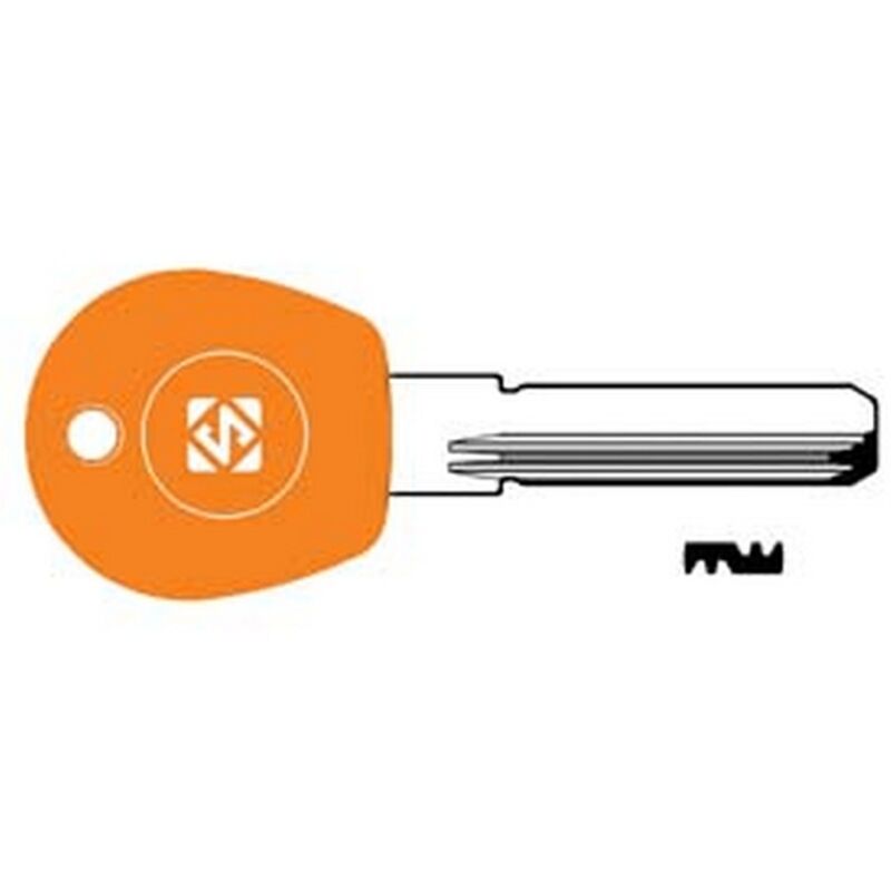 In ottone nichelato, profilo dorsato, testa plastica arancione, per cilindri di sicurezza
