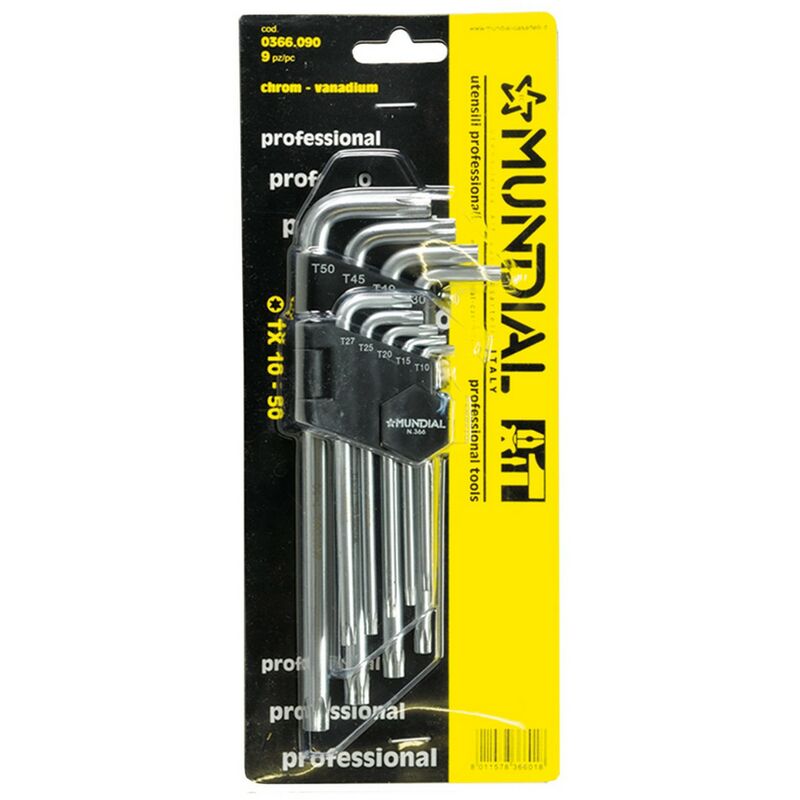 Finitura in acciaio cromo vanadio, tipo lungo. clip in plastica. composizione: t10, t15, t20, t25, t27, t30, t40, t45, t50.(t10-t50) 9 pezzi