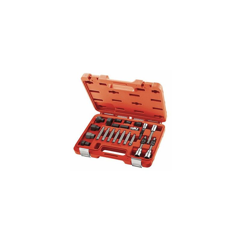 Set per il montaggio e lo smontaggio delle pulegge a ruota libera, per il cambio dell'alternatore e della puleggia - Permette di svitare e di fissare il dado centrale della puleggia e allo stesso tempo di bloccare l'albero - Le diverse possibilit� di combinazione consentono di evitare lo smontaggio di componenti supplementari come il radiatore