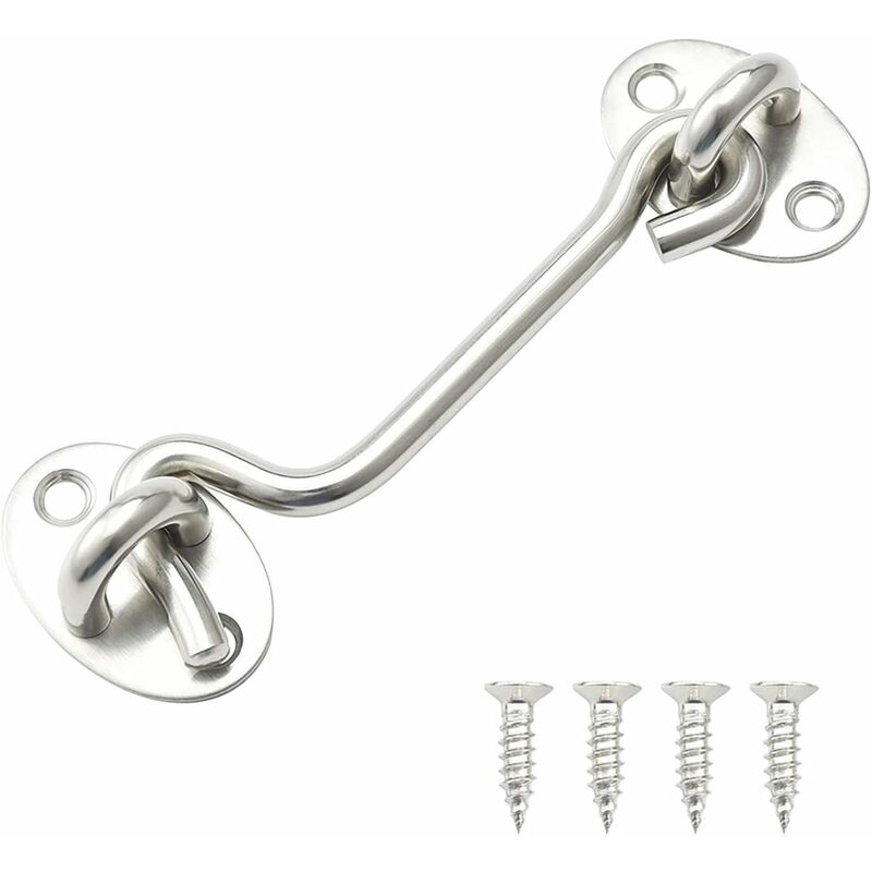 Contenuto della confezione: 1 gancio per cabina, 4 viti per il fissaggio. Dimensioni gancio cabina: 4 pollici, vite: M3,5 * 13 mm. Qualità premium e facilità d'uso: il gancio di rinforzo è realizzato in robusto acciaio inossidabile, resistente e durevole, antiruggine, anticorrosione, non facile per sbiadire o incrinarsi, aspetto premium. Ampiamente usato: il fermo a gancio può essere utilizzato per bloccare una varietà di porte o finestre. Oltre alle porte tradizionali, può essere utilizzato anche per porte scorrevoli, finestre, armadi, armadi o altre porte o finestre che possono essere utilizzate. adatto a molti luoghi, come camera da letto, ufficio, cortile, fattoria, seminterrato, ecc. Multifunzionale: il gancio della cabina può essere utilizzato per tenere chiuse o aperte porte e finestre in modo che non oscillino o non vengano spazzate via . Allo stesso tempo, può impedire ai bambini e agli animali domestici di sgattaiolare fuori dalla stanza. Fornire ulteriore sicurezza a te e