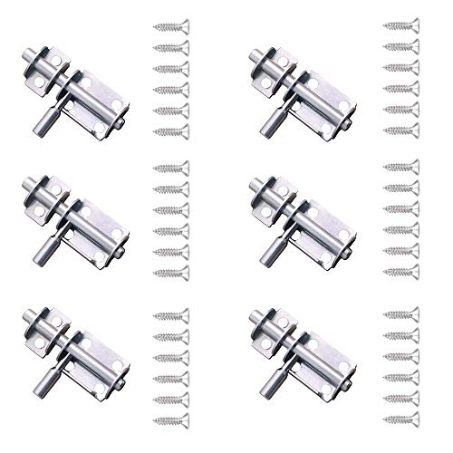 Chiavistello Scorrevole Inox Acciaio Serratura, 6 Pezzi Bullone Scorrevole Della Porta, Scorrere il Chiavistello con 36 Viti per Porte in Legno, Porte di Bagni, Porte di Stanze (Argento)