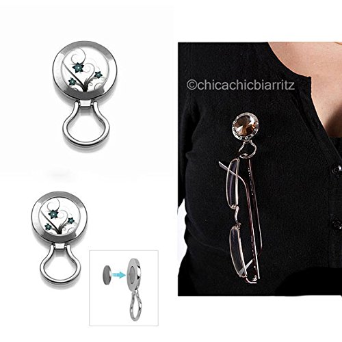 ChicaChicBiarritz Porta Occhiali Magnetico - Spilla Clip Magnetica Da Indossare (Myosotis)