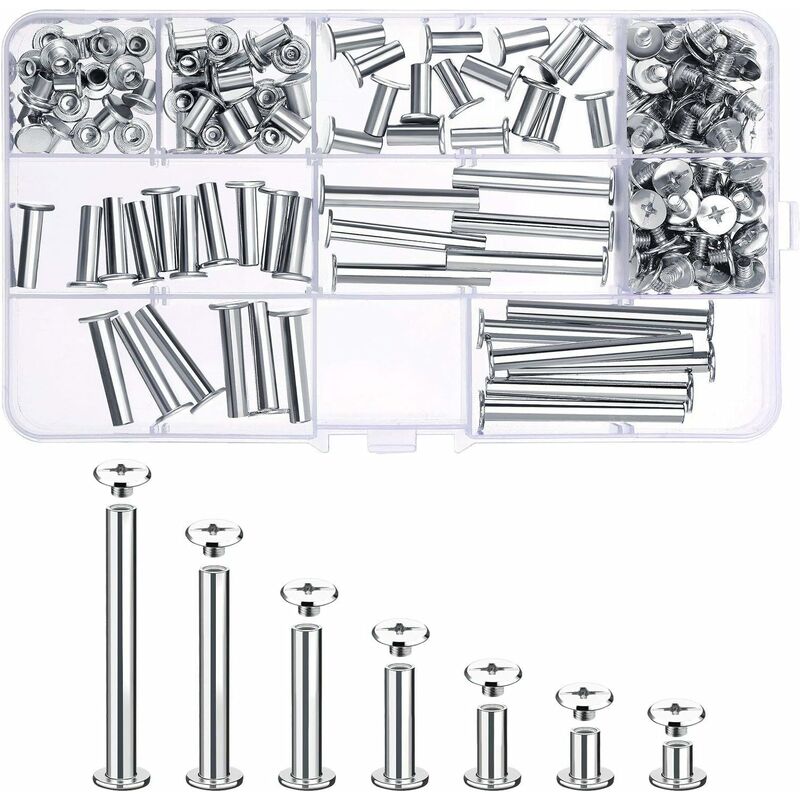 Un totale di 80 set di viti Chicago sono sufficienti per il tuo utilizzo Una varietà di usi: bello e pratico, ottimo per la decorazione di artigianato in pelle, legatoria, documenti, libri, album, artigianato fai-da-te, ecc. Dettaglio delle dimensioni: il diametro del gambo di queste viti Chicago è 3/16 (5 mm), la lunghezza del gambo è 3/16 (5 mm), 5/16 (8 mm), 1/2 (12 mm). ), 11/16 pollici (18