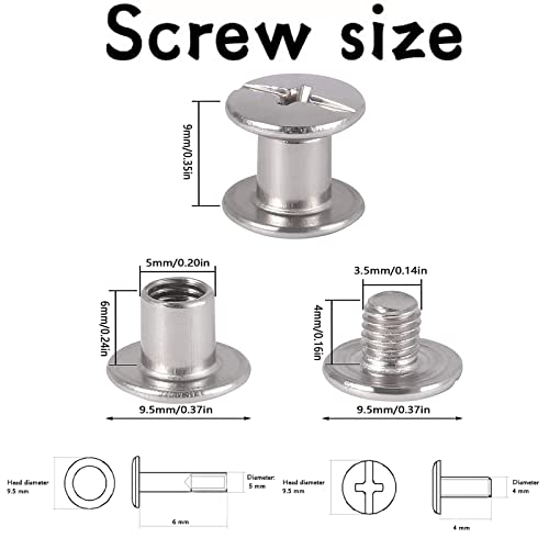 100 Set Vite Chicago, Binding Screws, Viti Per Libri, Vite Di Rilegatura, Vite Di Rilegatura Rivetti, Rilegature Testa Piatta, Chicago Viti, Per Pelle Fai Da Te,Libro,Album Fotografico,Cintura