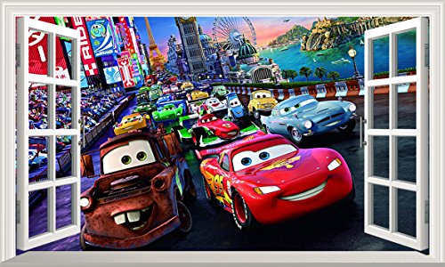 Chicbanners Cars 2 Lightning McQueen World 3D Magic Window Wall Smash V005 Adesivo da Parete Autoadesivo Poster murale Dimensioni 1000 mm di Larghezza x 600 mm di profondità (Grande)