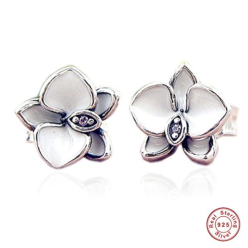 Chicbuy, Orecchini a perno in autentico argento Sterling 925, a forma di orchidea bianca, per donne, alla moda