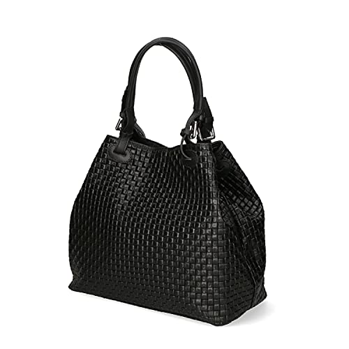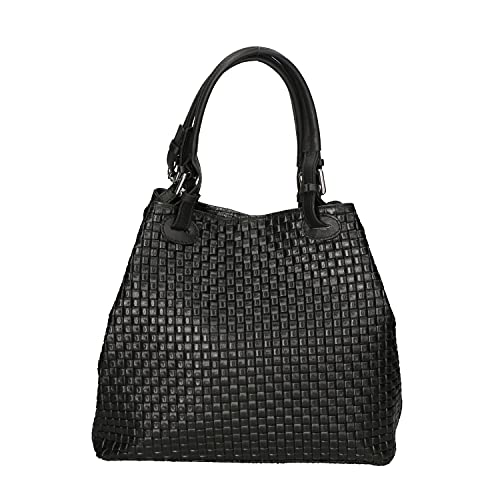 Chicca Borse Borsa tote donna borsa a mano in pelle camoscio stampa intrecciata borsa media italiana - Nero