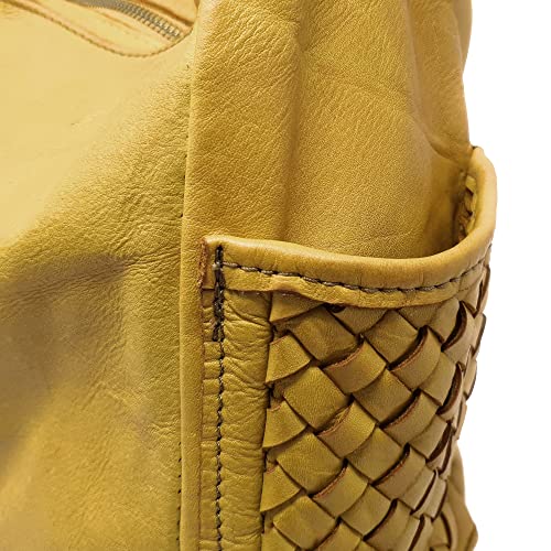 Chicca Borse Borsa Donna in Pelle Italiana a Mano con Tracolla Stile Vintage (Giallo Senape)